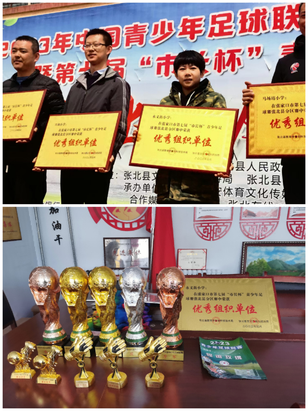 沉甸甸獎杯的背后,有著孩子們數(shù)不清的汗水與淚水,每一個(gè)日日夜夜,不管大風(fēng)大雨都有球員們的身影,加油拼搏吧!成績的取得離不開孩子們的刻苦訓(xùn)練,也離不開足球教練們的辛勤付出,更離不開學(xué)校領(lǐng)導(dǎo)的高度重視!預(yù)祝永義街小學(xué)的孩子們在今后的比賽中再創(chuàng)佳績,立壹臻優(yōu),為校爭光!(圖文來源:永義街小學(xué) 趙永紅; 編輯:孫建)