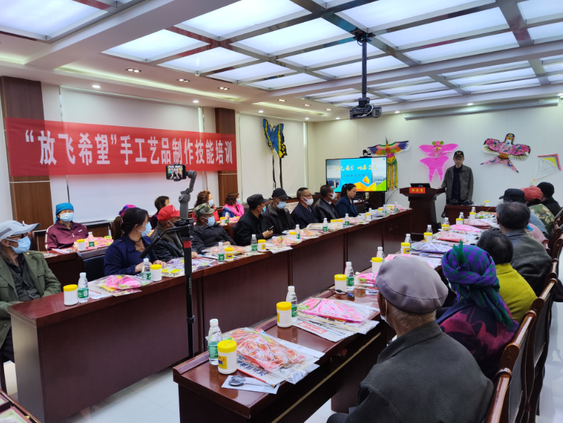 在5月15全國助殘日這一天,在饅頭營鄉(xiāng)會議室,希望小鎮(zhèn)項目組聯(lián)合張北縣殘聯(lián)、張北縣殘疾人溫馨家園組織了30多名當(dāng)?shù)亓羰乩先?、殘疾人村民開展了“放飛希望  手工藝品制作技能培訓(xùn)”,本次培訓(xùn)一共分為4期,首次培訓(xùn)主要內(nèi)容為“風(fēng)箏制作”,重點針對傳統(tǒng)風(fēng)箏及娛樂風(fēng)箏制作工藝進行培訓(xùn),培訓(xùn)現(xiàn)場邀請了中國航空學(xué)會專家、張北縣政協(xié)委員新聯(lián)會會員,剪紙、風(fēng)箏制作專家樹兒灣小學(xué)“蘭學(xué)淵老師”進行了專業(yè)講解及培訓(xùn),確保每一位學(xué)員掌握風(fēng)箏的制作工藝。